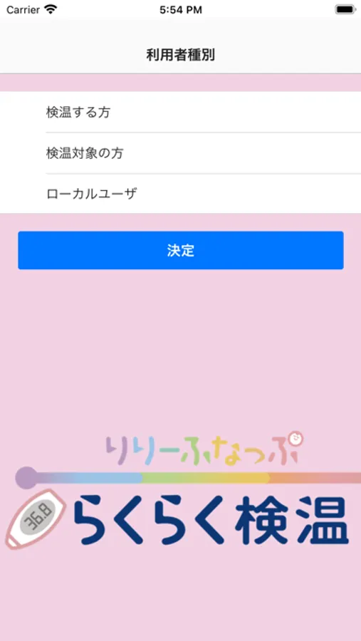 本アプリの利用登録がない方は利用者種別を「ローカルユーザ」としてご登録ください。