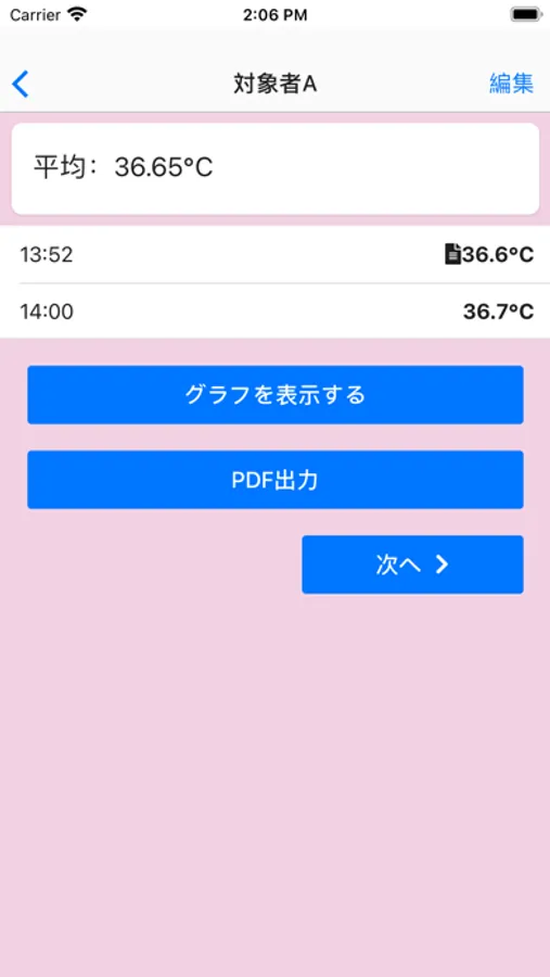 記録された体温はアプリ上でグラフに表示することができるほか一覧をPDF形式で出力することができます。