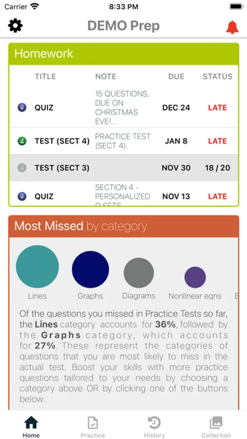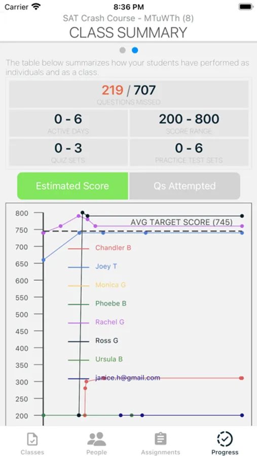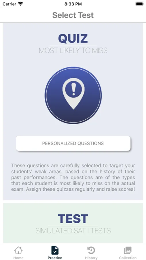 You and your students will have access to over 8,000 SAT Math-type questions reviewed by experts, personalized quizzes targeting each student's weakest areas, 50 practice tests, homework assignments, and detailed reports on students' progress.
