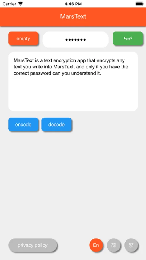 MarsText is a text encryption app that encrypts any text you write into MarsText, and only if you have the correct password can you understand it.