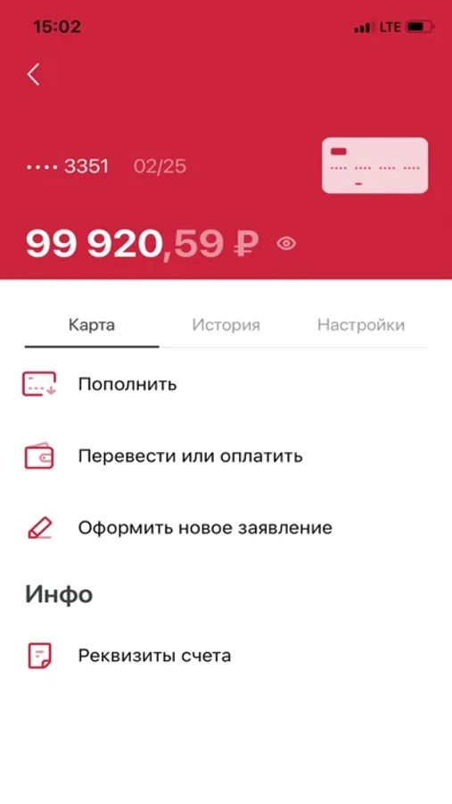 — просмотр реквизитов счета или карты;