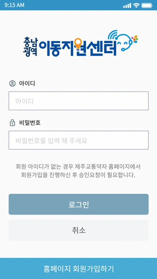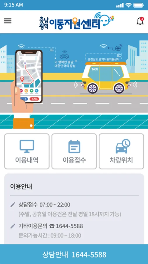 충남광역 이동지원센터 특별교통수단의 이용자앱입니다.