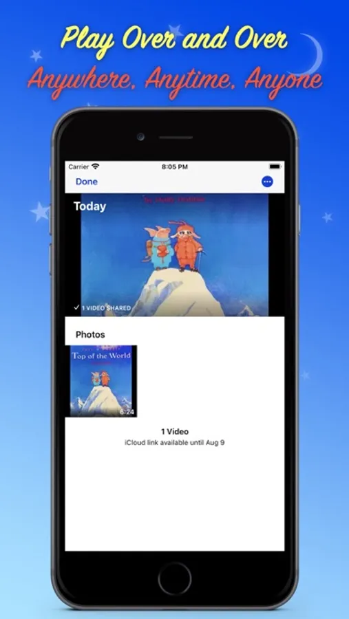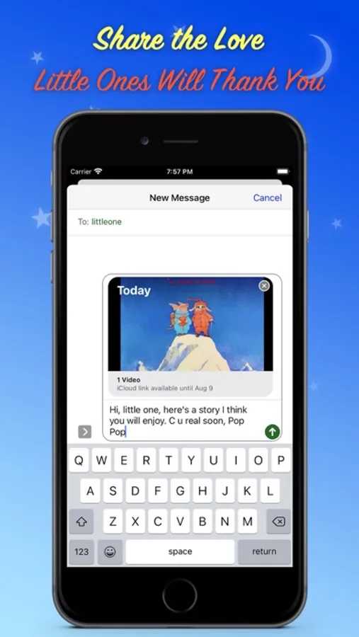 • Share - with your little one by imessage or email