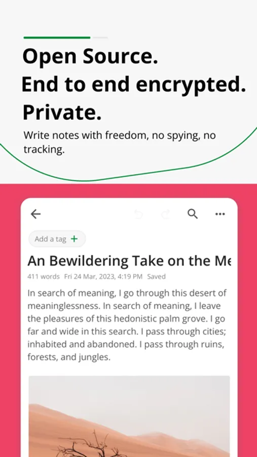 With military grade encryption, no one can ever read your secret notes except you. We use XChaCha20-Poly1305 & Argon2 encryption algorithms that are stronger & safer than AES256, impenetrable & future-proof. A level of security and privacy that is rare in note taking apps.