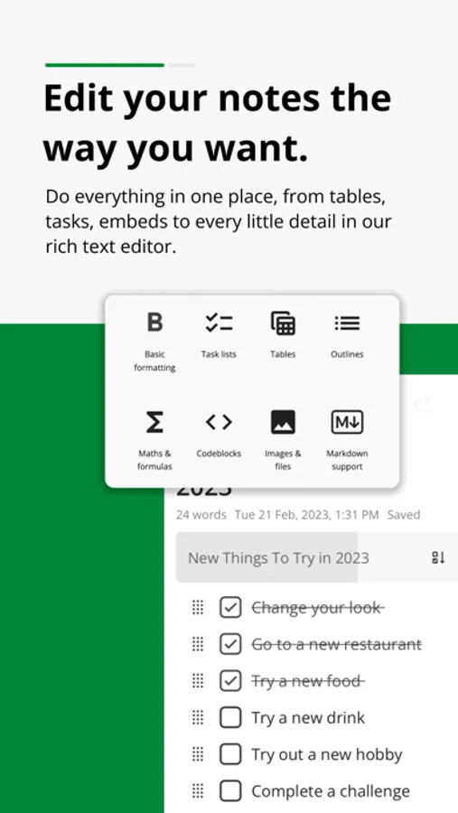 Use markdown in notes editor. Use all markdown shortcuts and write markdown notes. Add headings, links, lists & more with markdown shortcuts.