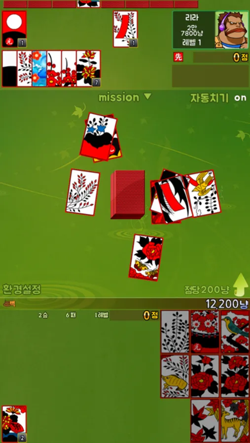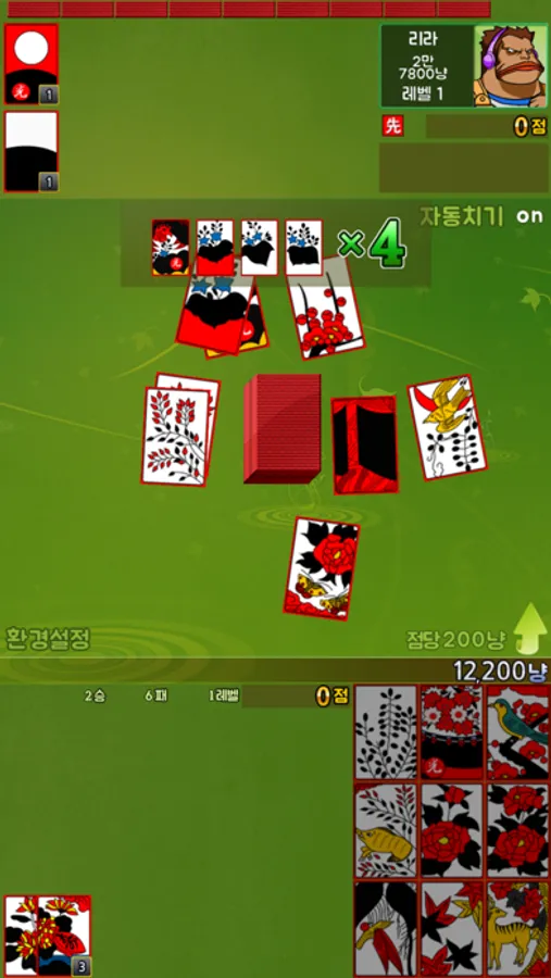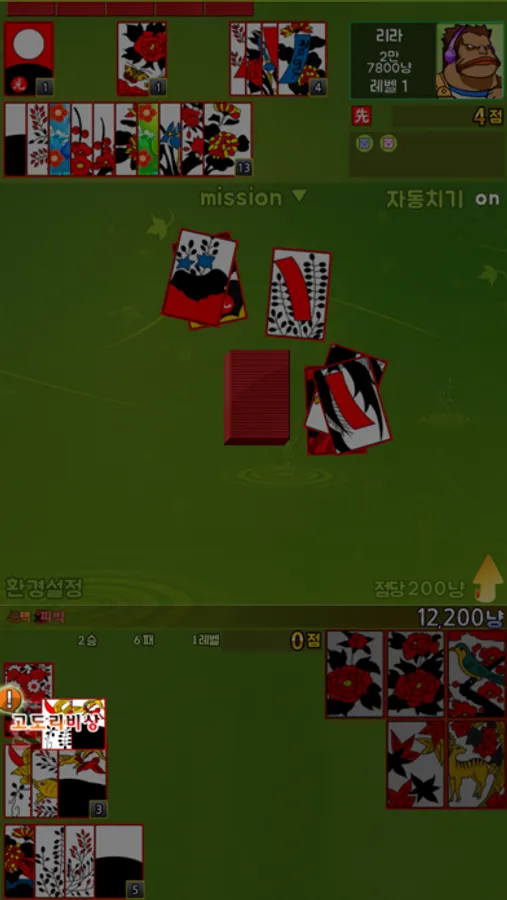 맞고+ 는 한손으로 됩니다. 오른쪽 하단에 패가 몰려 있어 한손플레이가 용이 합니다.