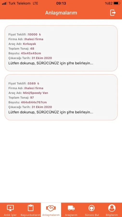 Sürücü, nakliyeci ve ihaleci firmalar arasındaki köprü ve arama motorudur. Nakliyeci, nakliyat ihalesine girebilir veya şoför arayabilir, işe alabilir, yük tanımı açabilir. Yönetici ihale açabilir yükünün nerede olduğunu kontrol edebilir, işe alabilir, yük tanımı açabilir. Şoför aracını tanımlar, ihale ya da ilana başvurur anlaşır çalışır.