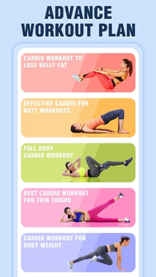 Aerobics exercise for weight loss is also known as cardio exercise and it's an important part of overall fitness for weight loss. Daily cardio workouts reduce belly fat and burn calories. Download this cardio workout app for women and men.