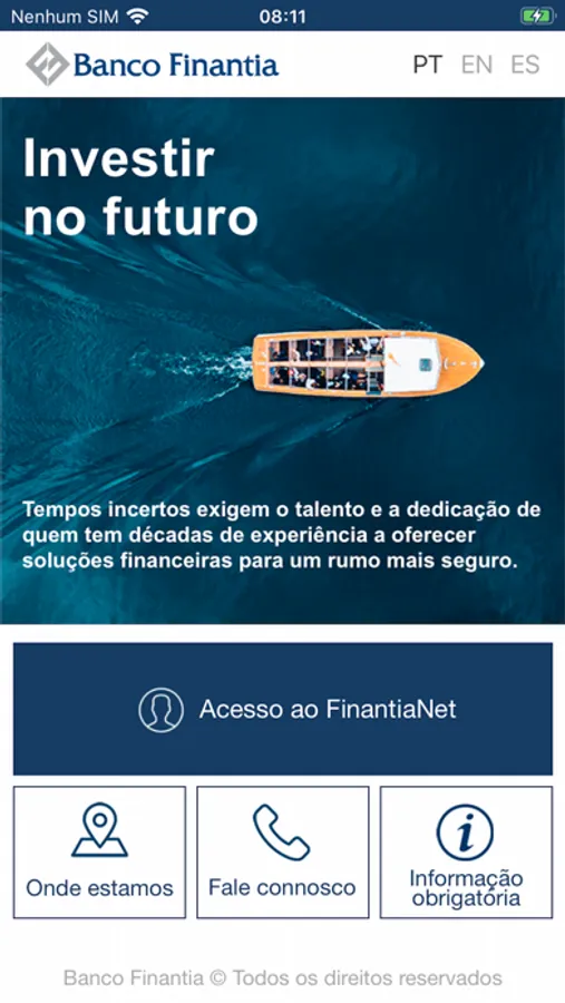 O FinantiaNet é um serviço de cortesia aos clientes do Banco Finantia, pelo que a sua utilização será totalmente gratuita. A única exceção serão / as comissões já previstas em preçário sobre transferências interbancárias e outras operações financeiras. Para mais informações, consulte o nosso Preçário em https://www.finantia.com/pt/precario/