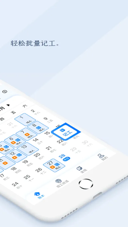『批量记工』可以对班组工人进行全选动作,轻松批量记工