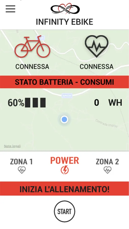 The Infinity Ebike® APP APP uses Bluetooth® SMART connectivity to connect and share information between your Infinity Ebike and the HRM sensor to monitor the cyclist's heart rate and adapt the thrust power of the engine based on the settings selected by the user.