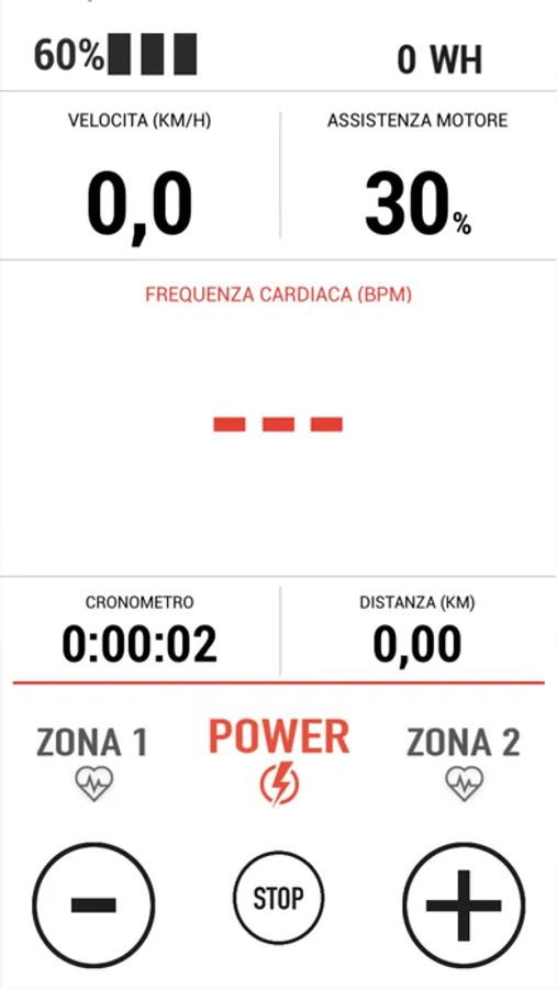Through the CARDIAC ZONES SETTINGS section, the user can change at will the motor power interval and progression of the motor by setting the minimum and maximum Heart Rate according to the selected HRW mode.