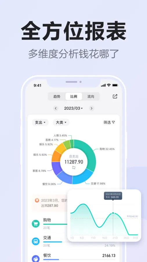 -收支结余、收支流向等报表,财富积累、花销去哪清晰易懂