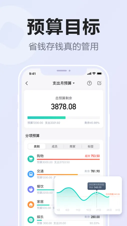 -预算目标:设置预算、收入目标、结余目标,满足省钱、存钱多种用途