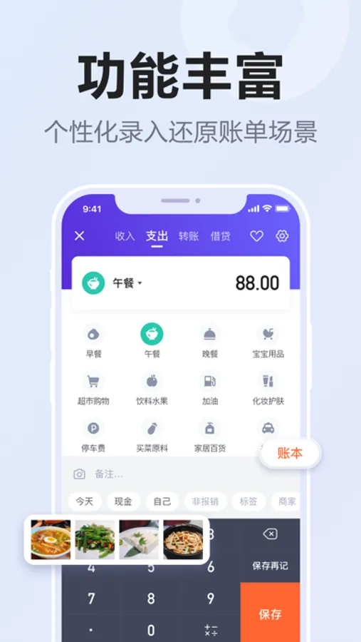 -手动记账:支持支出、收入、转账、借贷等账单录入,支持保存模版快速记账