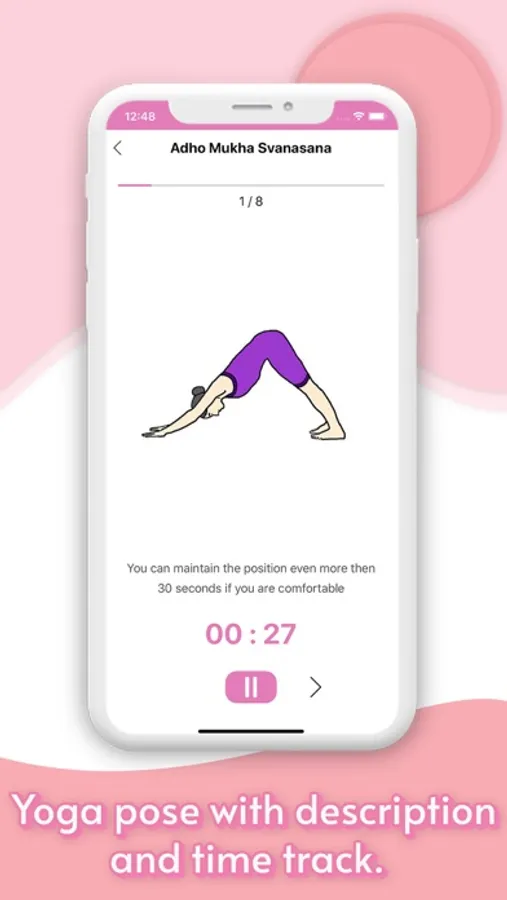 * Practice yoga asanas and poses with detailed step by step instruction & guide.