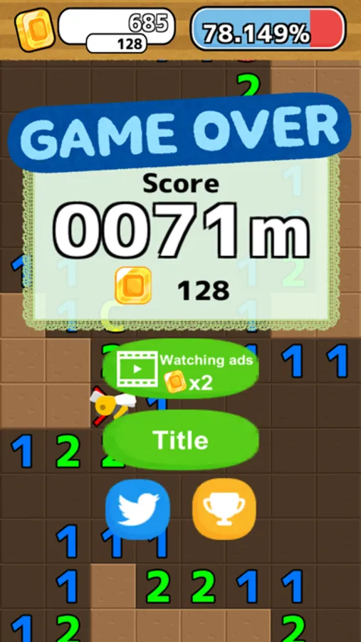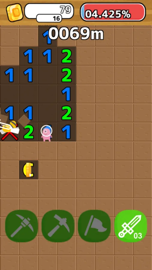 Use this number as a hint to find out which blocks contain enemies, and dig deeper and deeper into the ground to avoid destroying them.
