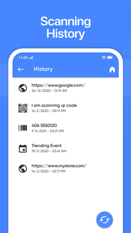 Fast scanner with very convenient interface. Scanned QR & Barcode history is saved in the app history.