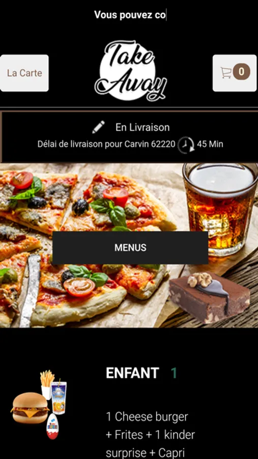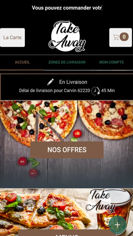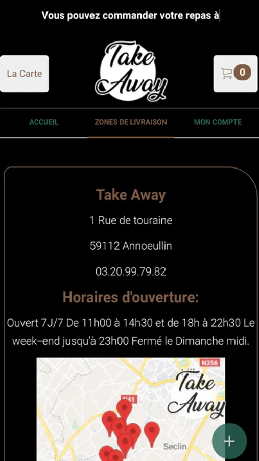 L'application Take Away vous permet de commander en ligne ou par téléphone via votre application . Vous pouvez consulter notre carte et choisir vos produits .