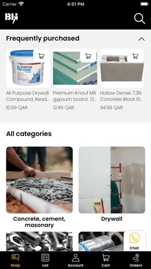Creating a list will help you quickly order items for regular jobs or builds. Most common lists we see are gypsum walls or common workshop consumables.