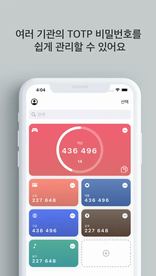 - 중요한 정보인 TOTP 토큰의 비밀번호를 생체인증(Face ID, Touch ID), 핀코드로 이중 보호 할 수 있습니다.