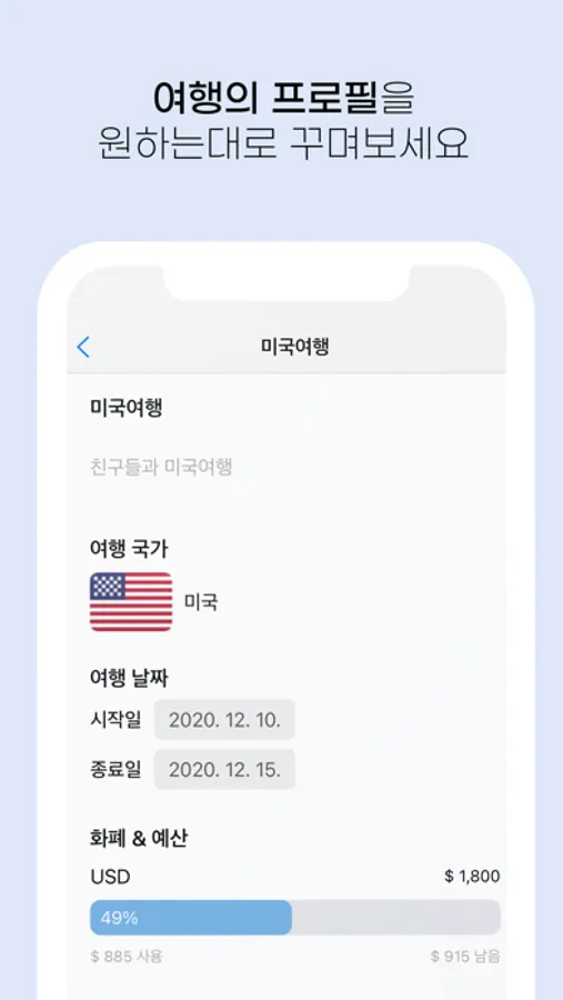 - 여행에서 발생하는 지출과 예산정보를 간단한 조작을 통해 추가할 수 있습니다.