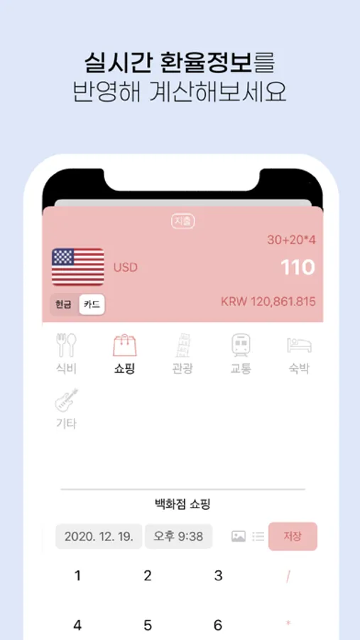 - 지출과 예산의 금액을 실시간 환율 정보를 반영하여 확인할 수 있습니다.