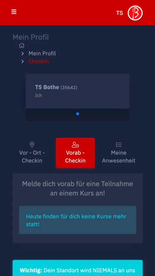 - einchecken zu deinem Wunschkurs