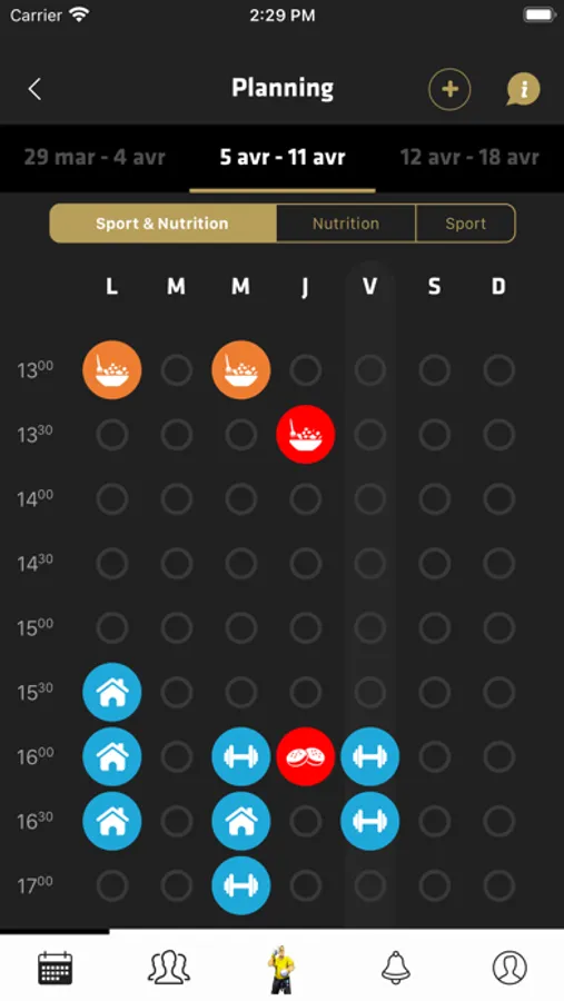 Dans votre planning vous pourrez ajouter vous-même les programmes sportifs et nutritionnels conçus par votre coach ainsi que par une nutritionniste certifiée. Tout est modifiable et modulable.
