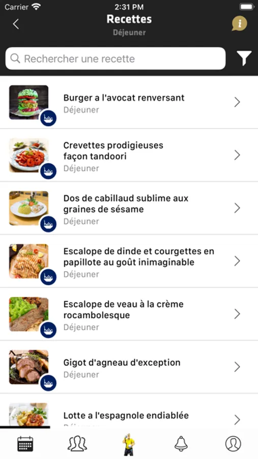 Sur celui-ci vous retrouverez la planification de vos repas et séances créés en amont par votre coach, en réponse à vos objectifs.