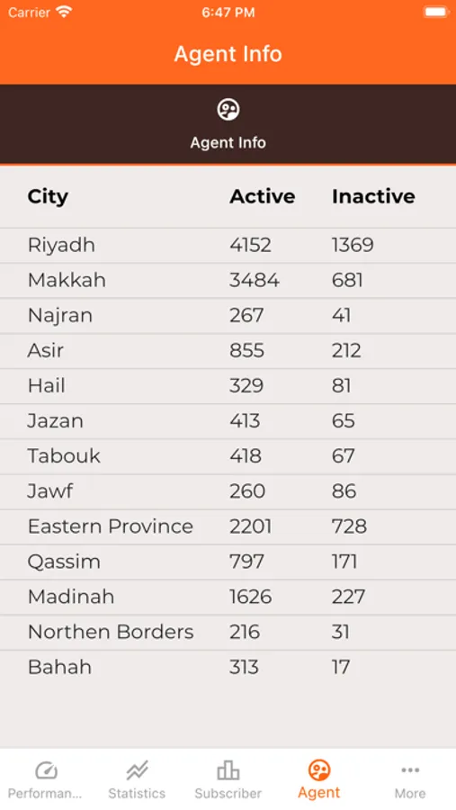 Agents info City wise in KSA