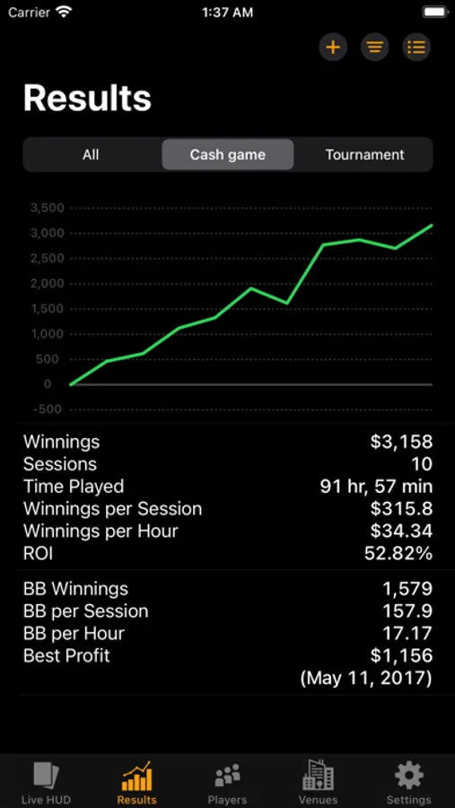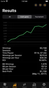 Pokeri is an assistant app with tracking and analysis for live poker players.