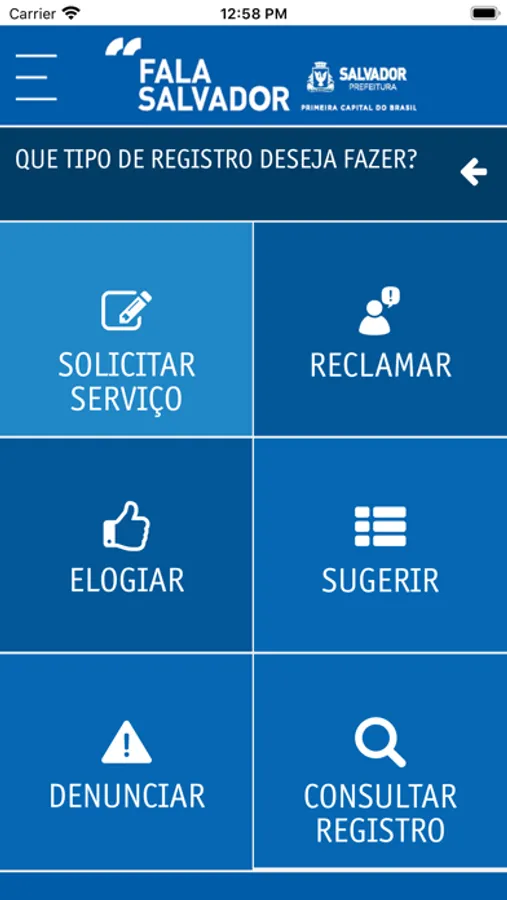 Este aplicativo permite que o cidadão se conecte com a Prefeitura para solicitar, reclamar, elogiar, sugerir e denunciar serviços. Possibilita também consultar e acompanhar seus registros realizados em qualquer outro canal desta Plataforma, ou seja, de forma presencial, através do Call Center ou da Internet.