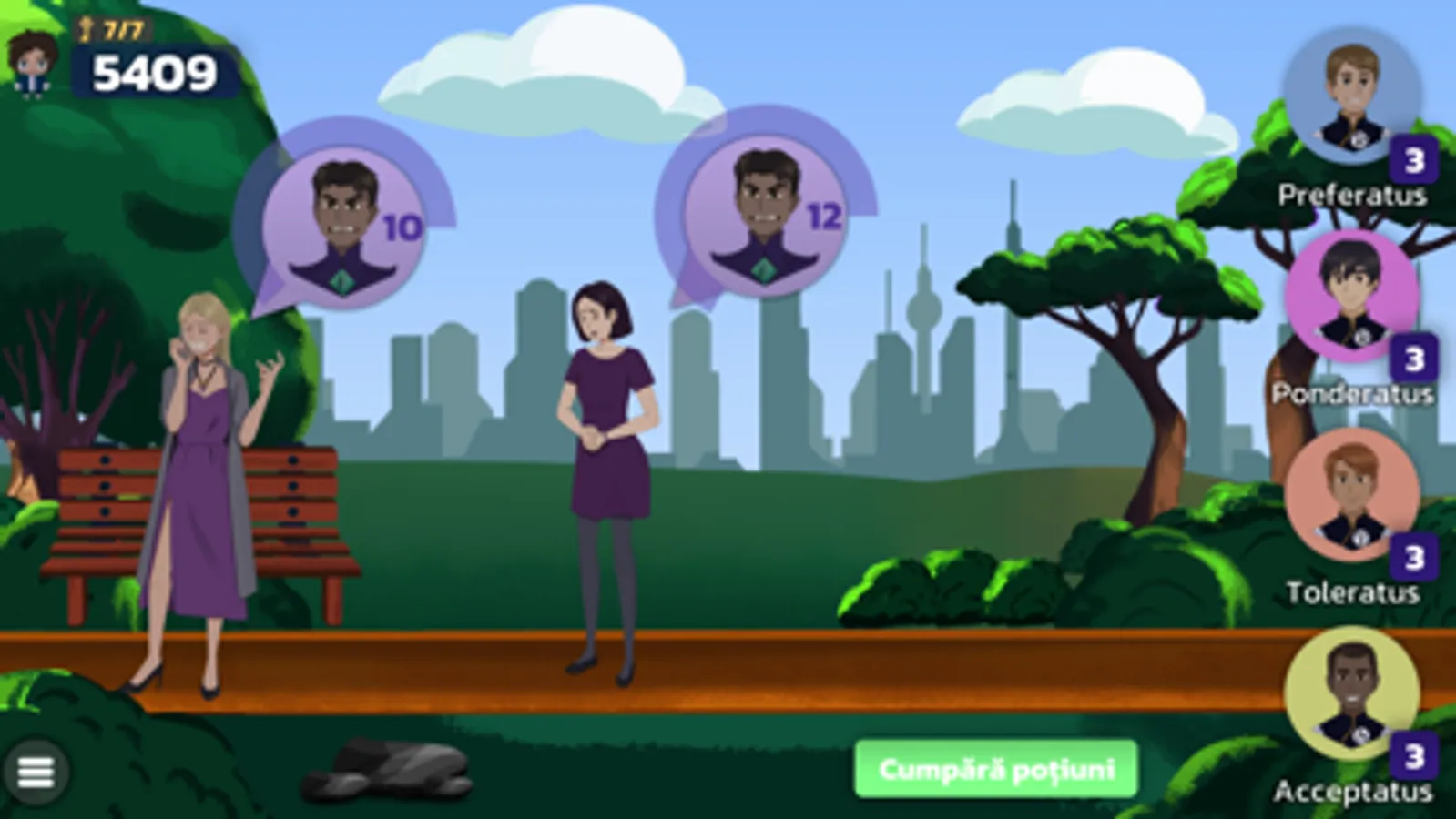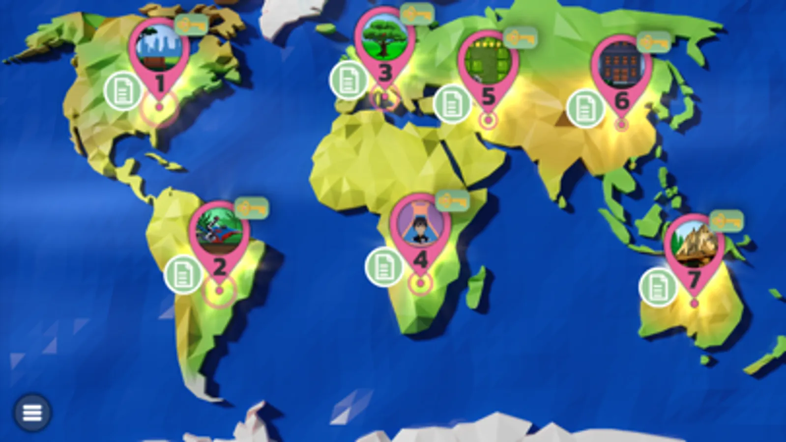 The game is based on the Retman character, which is belonging to tested packages of cognitive-behavioral therapy for promoting child and adolescent mental health (i.e., Rational Emotive Behavioral Education, REBT, Ellis, 1956; rational stories and therapeutic cartoons). The game has seven levels that take place in different territories on Earth, that are under the power of Irrationalizer and need to be conquered back from the bad mind, and at the end of each level, the player has to win the key to go into the next area. Each level has a trial part at the beginning, in which Retman is explaining player’s mission, and has various degrees of complexity, which increase as the player progresses. The scenario of the game and the seven levels structure focuses on seven objectives: Level 1: identifying the emotional reactions, and differentiating between basic emotions, complex emotions, and functional and dysfunctional emotions; Level 2: building relaxation and mindfulness skills; Level 3: identifying the relation between cognitive processes, emotions, and behavioral reactions; Level 4: changing irrational cognitions into rational cognitions; Level 5: building problem-solving skills; Level 6: building happiness and control attention skills; Level 7: consolidation of the previous skills and building happiness skills.
