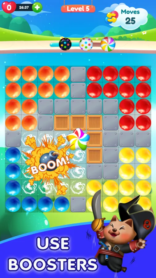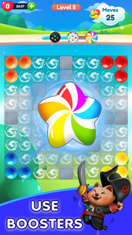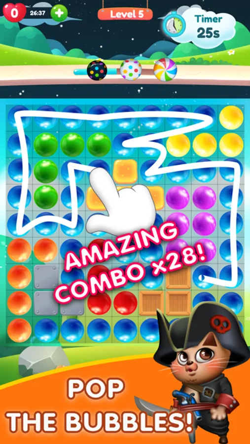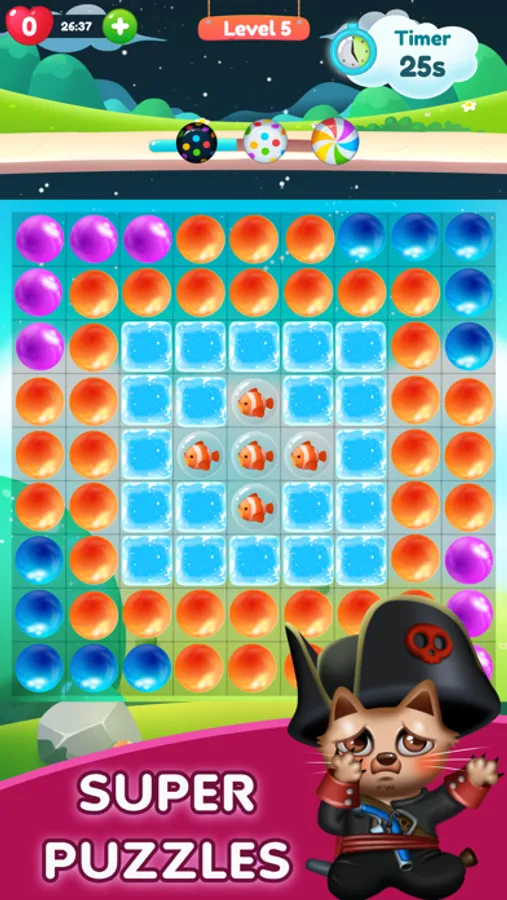 Relax with Kitty Bubble bubble game, you play as a pirate cat who has to face enemies during exciting games of Bubble Pop.
