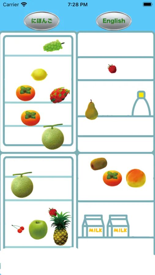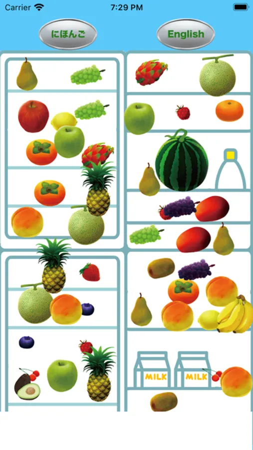 この「はじめての果物フルーツアプリ【くだもの冷蔵庫】(日本語⇄英語)」の特徴を6個紹介します。