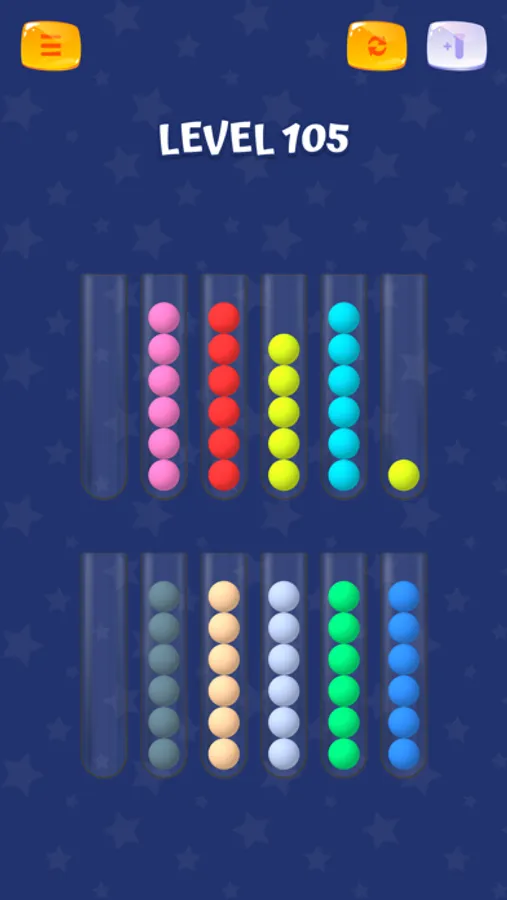 Magic Balls is a puzzle game about sorting balls into one color. Relax and exercise your brain at the same time. Get a lot of fun throughout hundreds of levels. Be attentive because sometimes it's not so easy as it seems to be.