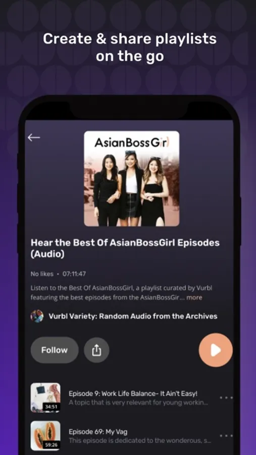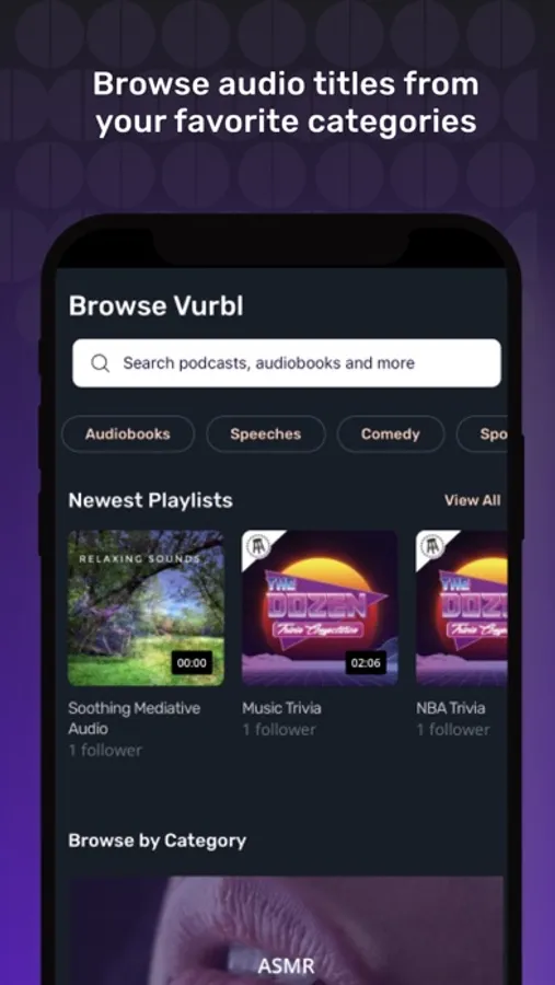 Find thousands of topics by millions of audio creators and podcasts across 100s of categories! Our experts have curated the 'good audio' so you don’t have to spend hours finding great things to listen to. Make snippets of your favorite audio moments and share with friends. Make playlists or create an audio library. Go ahead and enjoy audio with Vurbl!