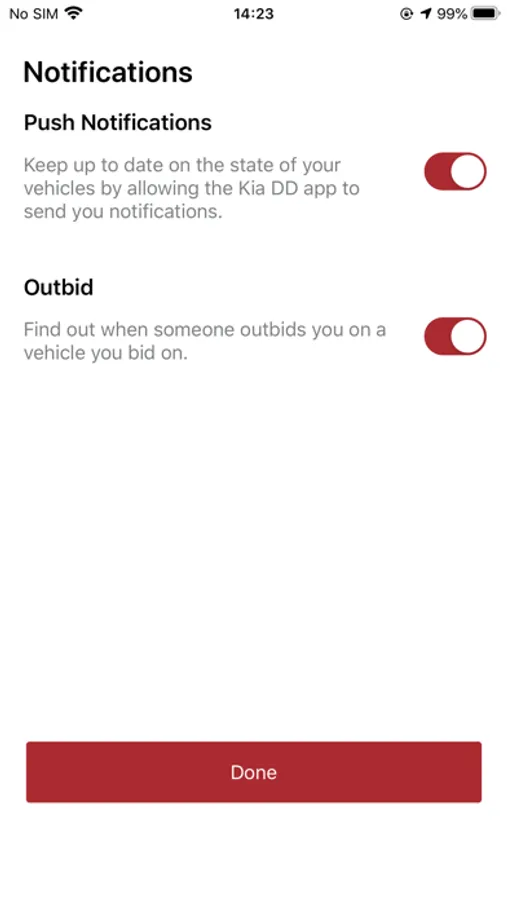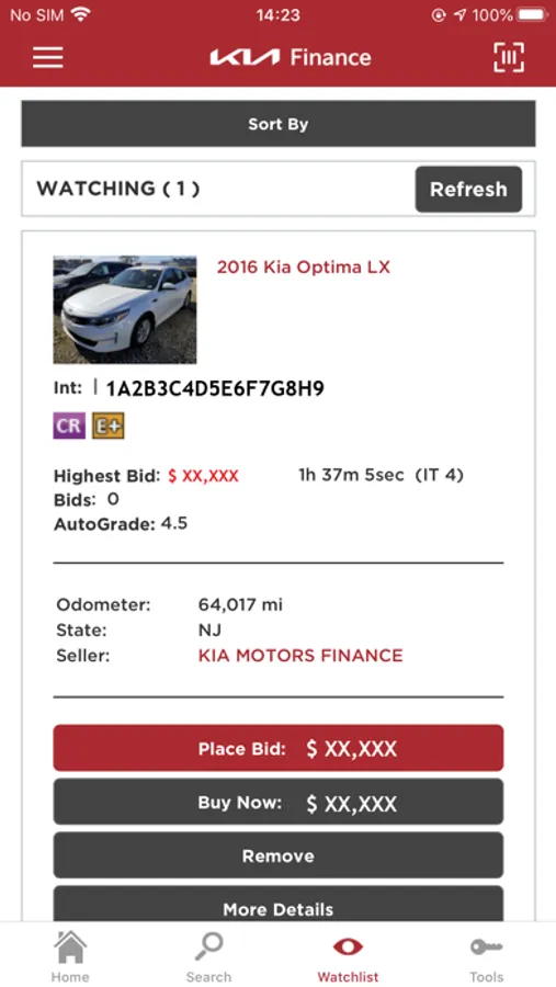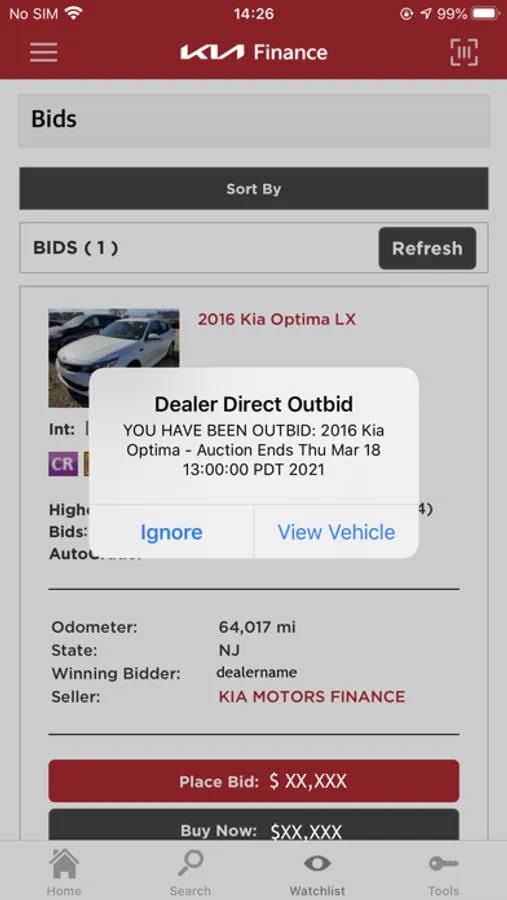 The Kia Dealer Direct app based version of the kiafinancedd.com website enables you to perform all of the tasks required to effectively manage the vehicle remarketing side of your dealership. Some of the available features of the app include: Touch/FaceID enabled for quick, secure access, Vin capture for vehicle grounding and turn-in, Push Alerts to stay up to date on bidding activity, Quick Navigation Guide that stores search results, DRIVIN Recommendation Carousel, Watchlist Updates and Rotating Home Page images that contain live links to relevant material.