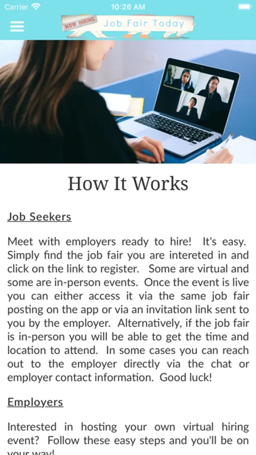 Now it is easier than ever to get connected to local job fairs. Whether you are an employer seeking to promote your job fairs or a job seeker, Job Fair Today is a simple app that gets you connected. Quickly find, share, and access local job fairs from anywhere. Use the messaging system to connect with hiring managers for quick interviews!