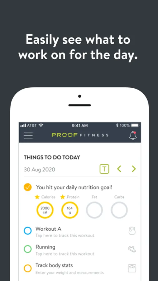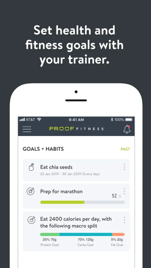 With the PROOF FITNESS Online App, you can start tracking your workouts and meals, measuring results, and achieving your fitness goals, all with the help of your personal trainer.