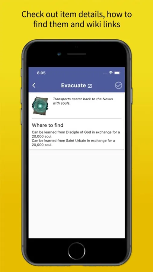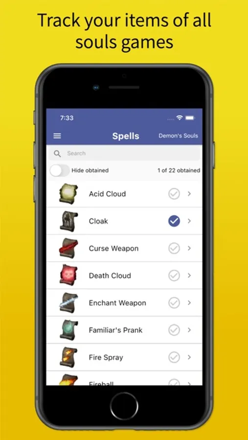 This app is designed to help you track your items on Demon's Souls and Dark Souls.
