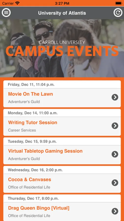 Use the Carroll University Events app to find out what events are happening and find out how you can get involved on campus!