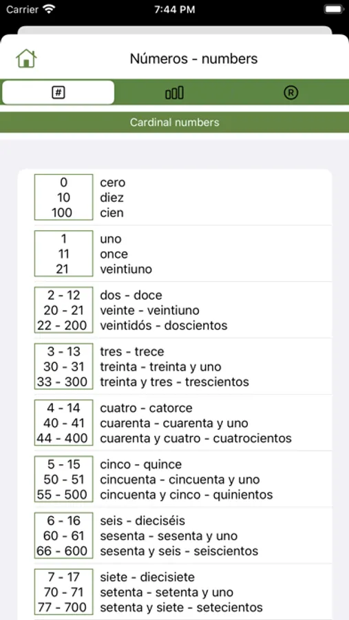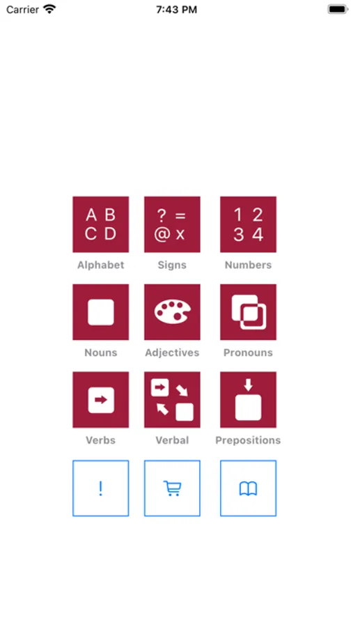 The app shows how to express times and dates, and contains many useful lists for the learner, such as abbreviations and signs. It even helps you to count and use mathematical expressions.