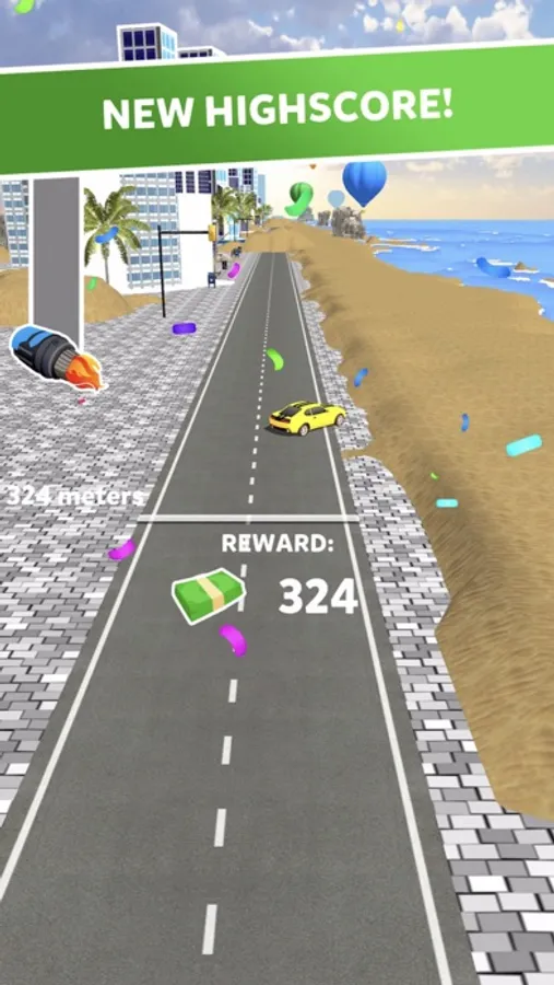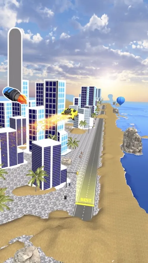 Drag your slingshot and release to launch the car. Upgrade stats to go as far as possible.