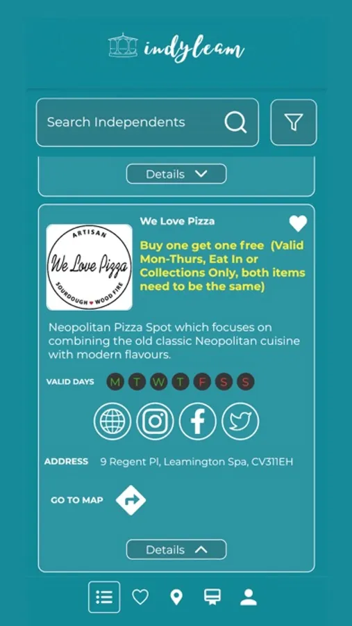 Whether you’re using our like feature to build a list of your favourites or setting a reminder of what great independent is next to try there’s something for everyone complete with a handy map feature to see what’s around and help find that local hidden gem!