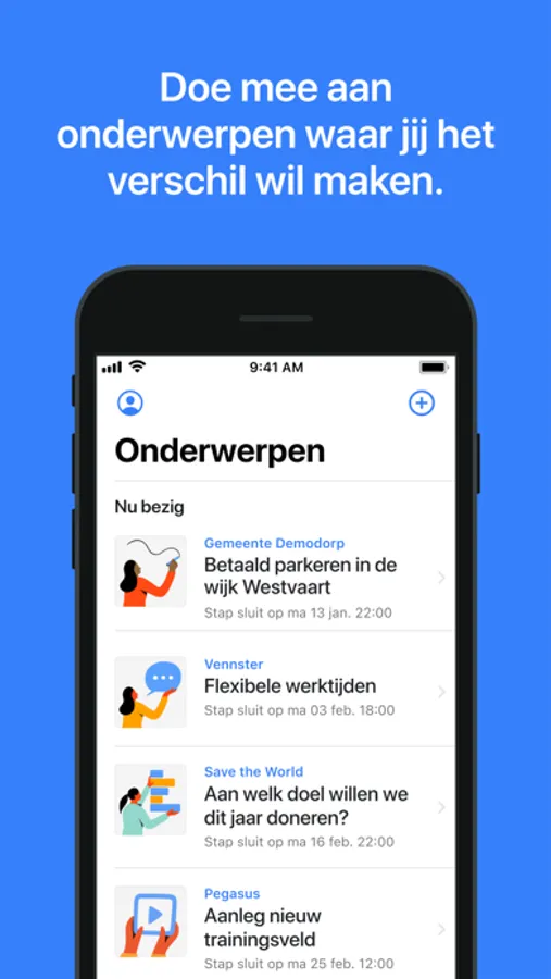 Je gemeente, werkgever, vereniging, vakbond, etc. bepaalt welke stappen voor het onderwerp gedaan worden. Je kan zelf bepalen aan welke stappen je mee wil doen.