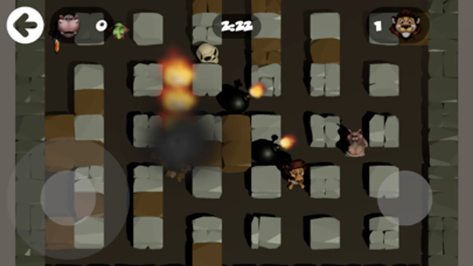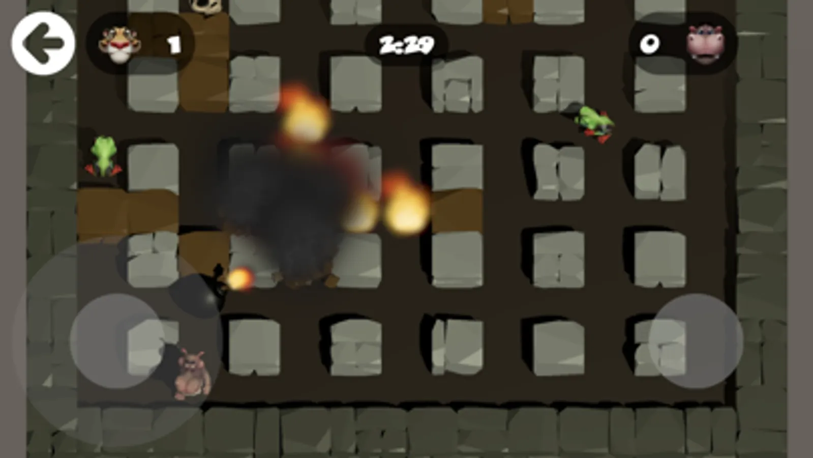Challenge your friends or play against random opponents. Bomb them and be the last to survive to win the match. Collect powerups to get more powerful bombs.