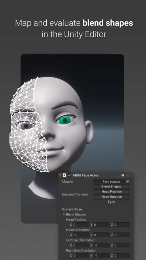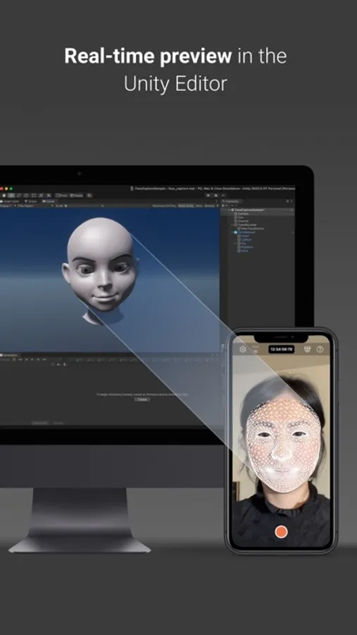 Unity Face Capture helps you easily add realistic face animation to your characters, saving animators many hours of time and effort. It captures your facial expressions and head movements to control a character in Unity in real time.