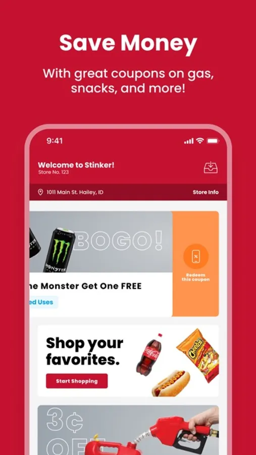 Save money at Stinker Stores with great coupons on gas, snacks, and more! Simply tap the orange redeem button and show your phone at purchase to redeem your coupons.